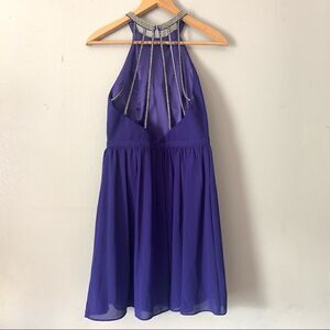 Minuet Halter Sheer Rhinestone Mini Dress. Perfect dress for that special occasion. Hooks at the neck and has a back zipper. Fully lined. Good condition, no flaws!