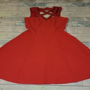 Beautiful dress, but it does have a light/tiny Spot, as well as deodorant marks.