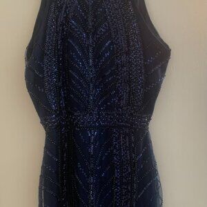 Stunning New Navy Sequin Dress – Knee-Length Elegance (Size Large)