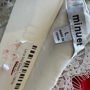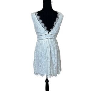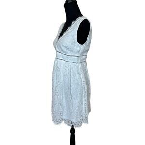 Minuet White Cotton Lace Fit Flare Mini Dress LARGE Embroidered Romantic $99 NEW