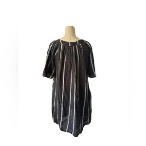 Miou Muse A Line Dress Womens Small Black White Striped Linen Pleated Split Neck