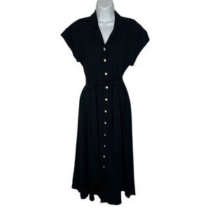 Miou Muse Button Down Flare Dress Shirt Dress Linen Blend Belted Black Small