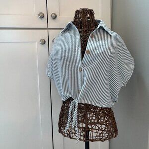 Miou Muse | Button-Up Tie Cropped Shirt | Seersucker Sage Green | Large (NWT)