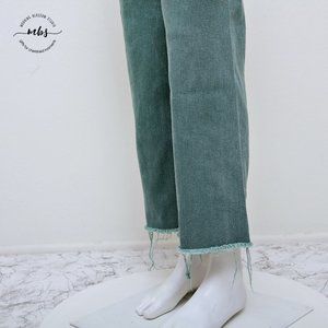 Miou Muse High Waist Wide Leg Frayed Hem Jeans