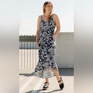 - gorgeous white leafy print on a tan fabric, spaghetti straps, a v-cut in front and back, and wide legs that are cut higher on the sides. This is the first item in our suitcase for beach vacays!