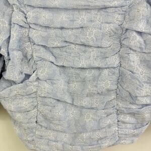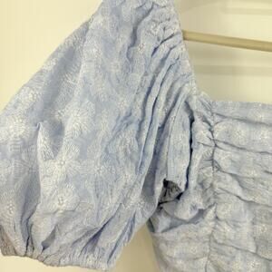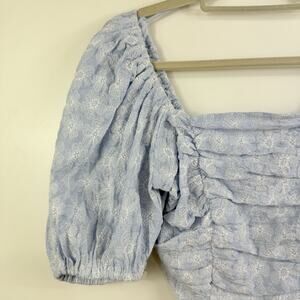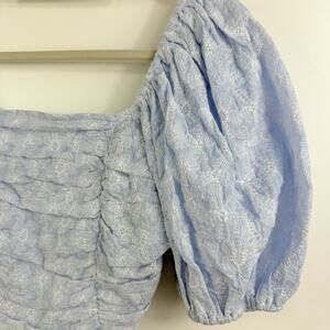 Miou Muse New Blue Floral Embroidery Puff Sleeve Crop Top Medium Cottagecore