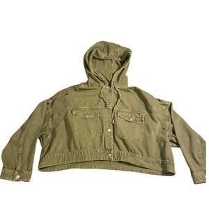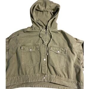 Miou Muse Olive Green Cropped Utility Hoodie Jacket – Size L