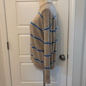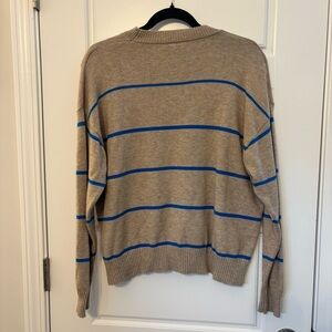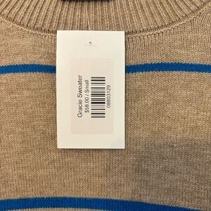 Miou Muse Tan And Blue Striped Long Sleeve Soft Crew Neck Gracie Sweater Small
