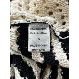 Miou Muse Womens Black & White Open-Knit Cropped Cardigan Sweater Size S