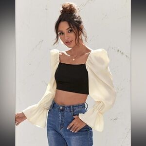 Miou muse | Long puff sleeve Colorblock blouse | Size XS