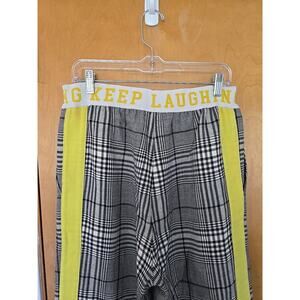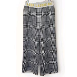 Mira Mikati Black / Cream Plaid Printed Wide Leg Pants Size 38 EU 8 US