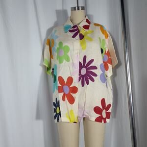 Mira Mikati Printed Short Sleeved Shirt Size 40/ US L: Designed with a rainbow floral print featuring a collared neck and short sleeves. This shirt has a button placket.