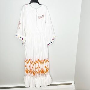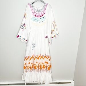 Mira Mikati White Boho Kaftan Maxi Dress Size EU 36