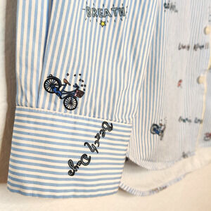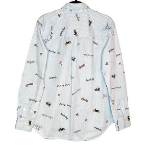 Mira Mikati Womens Button Shirt Size 4 FR 38 Striped Printed Fabric Classic Chic AOP Resort Preppy Cute Bicycle
