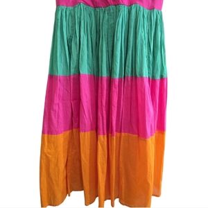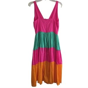 Mira Sundress Multicolor Colorblock Tiered Midi Dress Cotton Medium