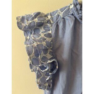 Mira Womens Size Small Chambray Blue Blouse Eyelet Flutter Ruffle Sleeve