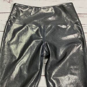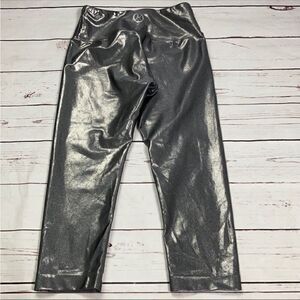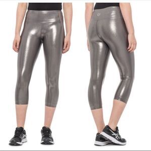 Mira Rae Silver Laila Metallic Capri Leggings. EUC. Size Small