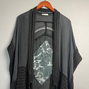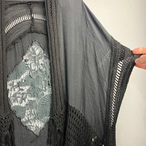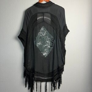 Miracle Black Fringe Crochet Kimono Whimsigoth Fairy Grunge Boho Festival S/M