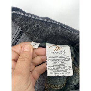 Miracle Body Jeans Women’s 2 Gray Charcoal Denim Straight High Rise Embellished