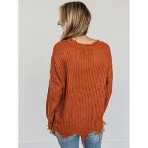 ✨Miracle Cable Knit Distressed V-Neck Burnt Orange Sz M/L Sweater✨