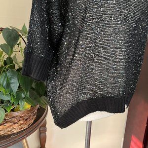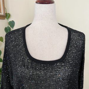 Miracle City Black Knit Sequined Cashmere Blend Top sz S/M