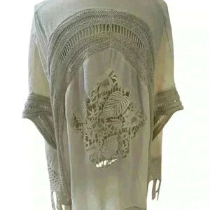 Miracle Boho Cotton Cardigan. Size Small/Medium. Cream color cotton with crochet and lace detail. Short sleeve to wear over a tank top great layering piece. See tag photo for material. #406D