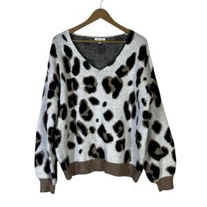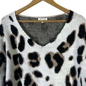 Miracle Leopard Print Oversized Sweater Womens S/M White Cotton Cozy Neutral