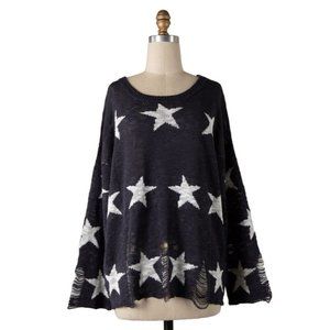 Miracle Navy Star Distressed Sheer Sweater Top W2303-NAVY
