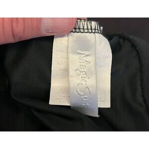 The Miracle Suit Womens Size 16 Black Swim Bottoms are stylish and practical swimwear designed for women. Made from a blend of polyester, nylon, and spandex, these bottoms offer a slimming fit with tummy control and stretch for added comfort. The classic black color and solid pattern make them versatile for various beach or poolside looks. With a designer theme and focus on a flattering fit, these bottoms are sure to enhance any summer wardrobe.