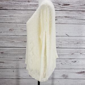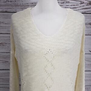 Miracle- Women's Ivory Knit V-Neck Sweater Top Size Small to Medium. Cotton, nylon, wool fabrics . Approx. measurements pit to pit 23 in. Sleeve length 18 in. Top length 24 in. Pre-owned in good condition, no visible flaws.