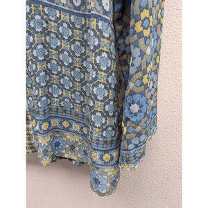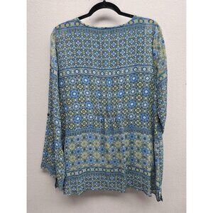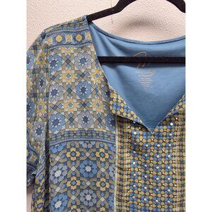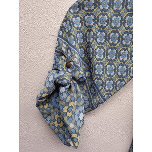 Miraclebody Shirt Womens Large Blue Yellow Geometric Print Pullover Lined Top