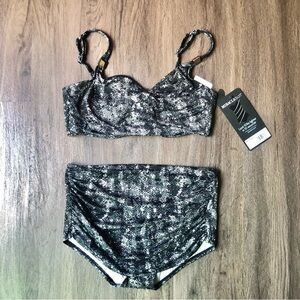 Miraclesuit 2 Piece Bikini Swimsuit Size 36DD Black Snakeskin Underwire Surplice