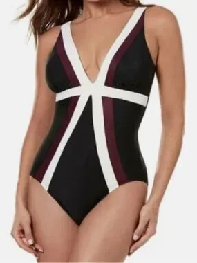 The Miraclesuit Women's Spectra Trilogy One-Piece Swimsuit is designed with a v-neckline and slimming fabric to provide a firm control. Size 18. Has stretch and def make you look 10lb lighter!