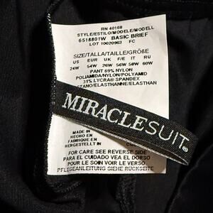 Look 10 pounds lighter in 10 seconds with this New Without Tag Miraclesuit Basic Brief Swim Bottom in women's plus size 24W, designed in a sleek black color. Made from spandex and nylon polyamide, this swim bottom features a slimming, tummy control, and stretch for comfort. Perfect for beach, pool, or vacation settings, it embodies a slimming and classic style with a touch of marine and summertime themes, making it a versatile and stylish choice for any summer wardrobe.