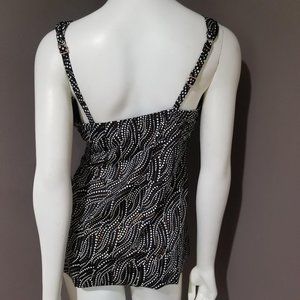 Dots with touches of metallic dazzle brighten the flattering shape of this Miraclesuit underwire tankini top. Bra sizing ensures a fine fit.