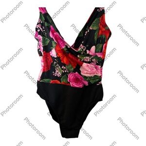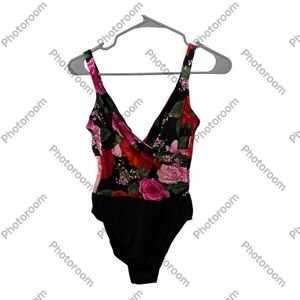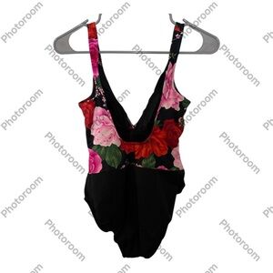 Miraclesuit Black and Pink One Piece Swimsuit with Floral Design