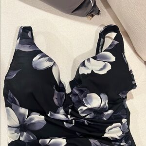Miraclesuit Black and White floral One Piece Swimwear size 16