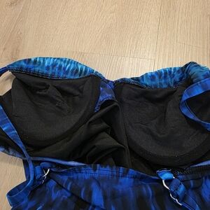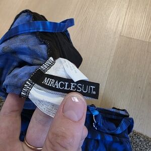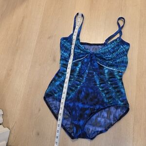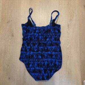 Miraclesuit Blue Black Watercolor Bow Padded Swim Bathing Suit One Piece Size 12