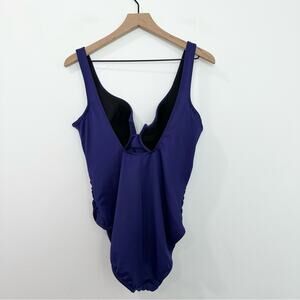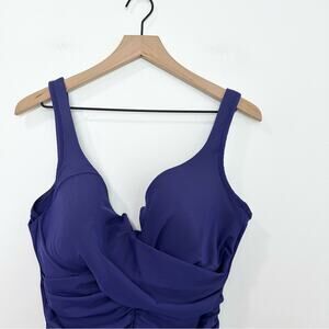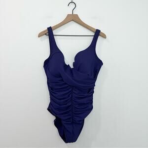 Miraclesuit Blue Criss Cross Escape One Piece Swimsuit Slimming Underwire