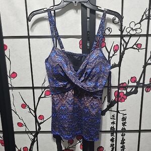 Miraclesuit Blue Patterned Swim Tankini Size 8 New