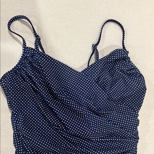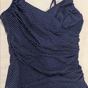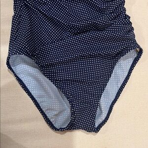 Experience the elegance of the Miraclesuit swimsuit, crafted in a stunning blue and white polka dot combination. So I draping in bust area and ruching in waist area.
