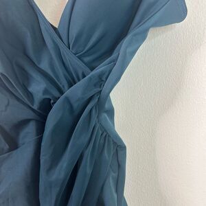 - Shirred crisscross draping on the front for an hourglass silhouette