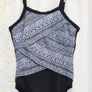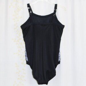 Miraclesuit Castaway Zephyr One Piece Black White Underwire Swimsuit Women's 14