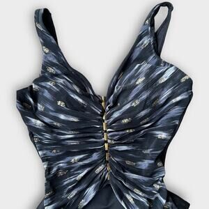 Sculpted by ruched panels, this two-tone swimsuit is designed with Miratex fabric to smooth, hold and shape.