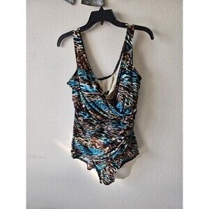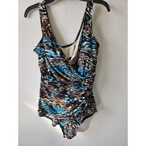 Miraclesuit Cheetah Printed one-piece Swimsuit Size XL Crossover drapes Cruise