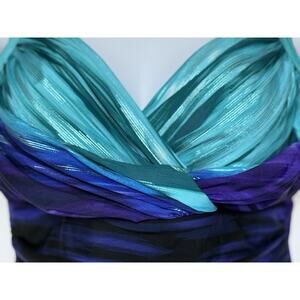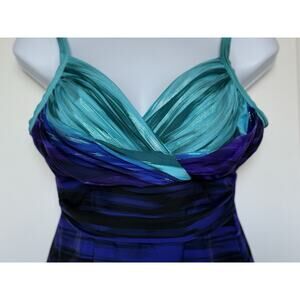 Miraclesuit Deep End CARUSO Ruched Blue/Purple Tankini Swim Top, US 10 EUC