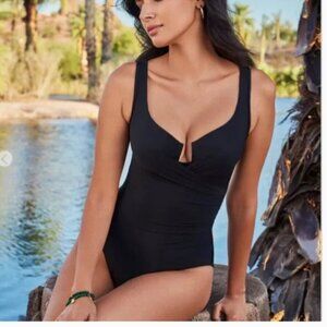 Miraclesuit Black Must Haves Escape Plunge One-piece Swimsuit Size 12