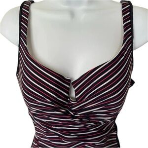 Miraclesuit Layered Escape one piece swimsuit in navy with red and white stripes. Excellent condition. Size 12