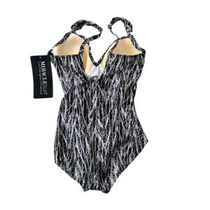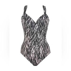 Miraclesuit Metallic Silver Chevron Python Siren OnePiece Swimsuit Size 8 NWT