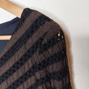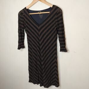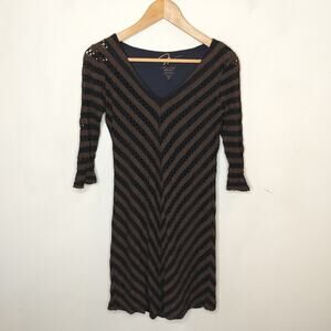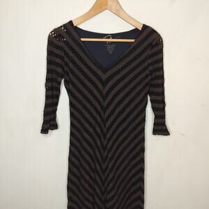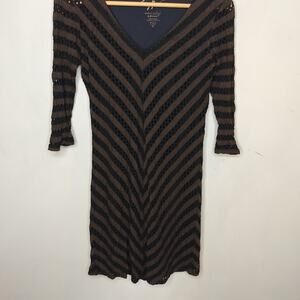 Miracle Body by Miracle Suit brown black stripe 3/4 sleeve mini dress. Size M. Pullover. Nylon spandex. (20507)